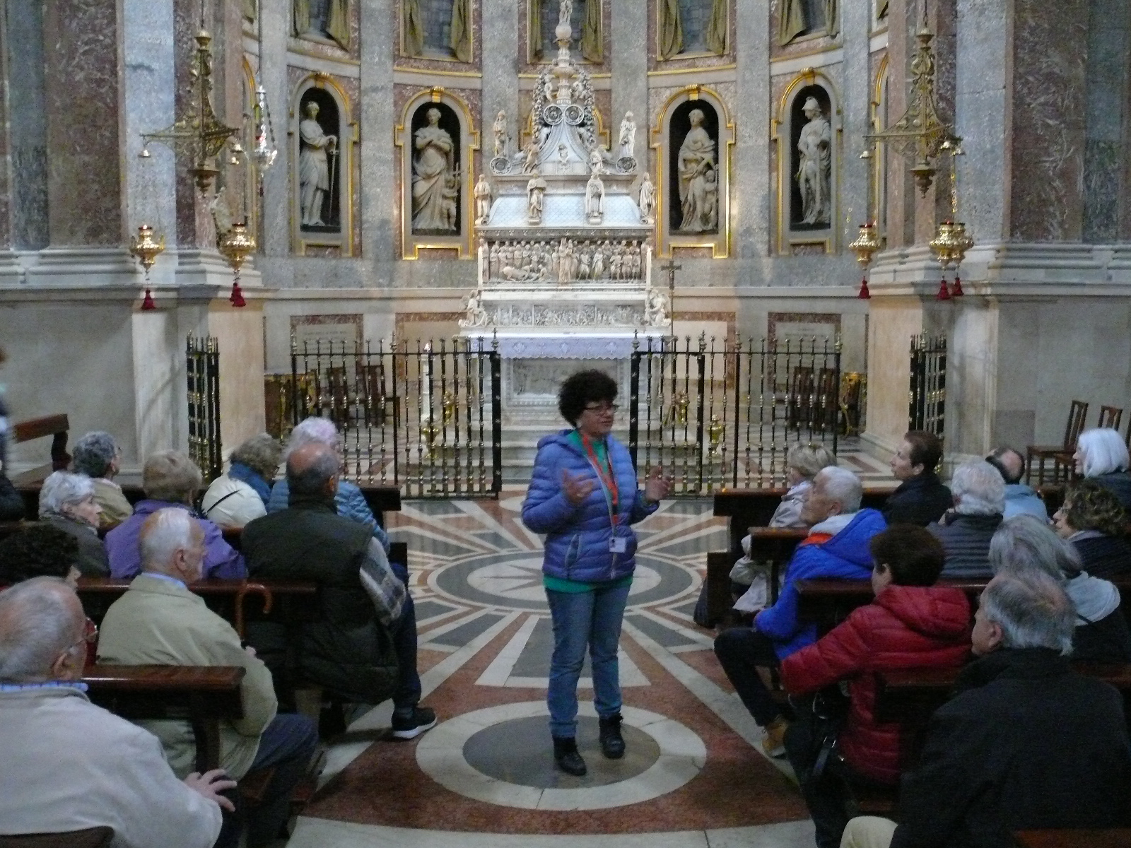 Il resto della visita al complesso di San Domenico è stato curato da Elisabetta Berselli delle Guide d’Arte, aderente a Confesercenti Bologna. «Questa è una bellissima chiesa – ha affermato la guida Berselli, illustrando le opere d’arte e la struttura della cappella dedicata al santo – San Domenico è stato uno dei maggiori santi della cristianità. Nasce in Spagna e si muove moltissimo in Francia e in Italia e il legame con Bologna è dato dal fatto che fu uno dei primi fondatori dei conventi domenicani e che morì qui a Bologna il 5 agosto del 1221, dove viene sepolto nel convento fondato nel 1216 dal gruppo di frati che si erano insediati in Santa Maria della Mascarella. La chiesa che vediamo fu costruita sopra una vecchia chiesa che, nel corso dei secoli, ha subito trasformazioni enormi. Il sepolcro di San Domenico fu cominciato da Nicola Pisano nel 1264 e completato nel 1473 da Niccolò dell’Arca. Alla fine del XV secolo ci lavorò anche un giovane Michelangelo che realizzò le statue di un angelo reggicandelabro, di San Petronio e di San Procolo».