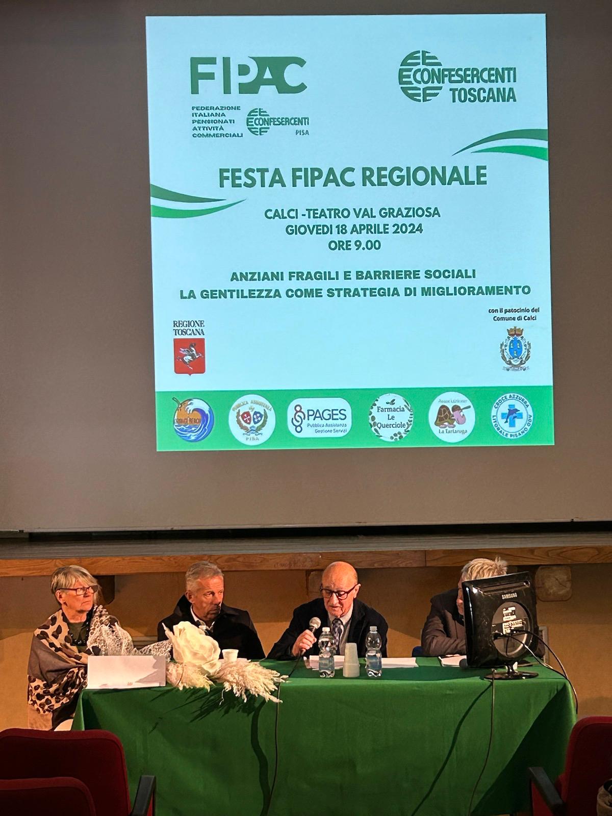 Si è tenuta il 18 aprile, a Calci, presso il teatro Val Graziosa, la Festa Fipac della Regione Toscana, dal titolo “Anziani fragili e barriere sociali, la gentilezza come strategia di miglioramento“.